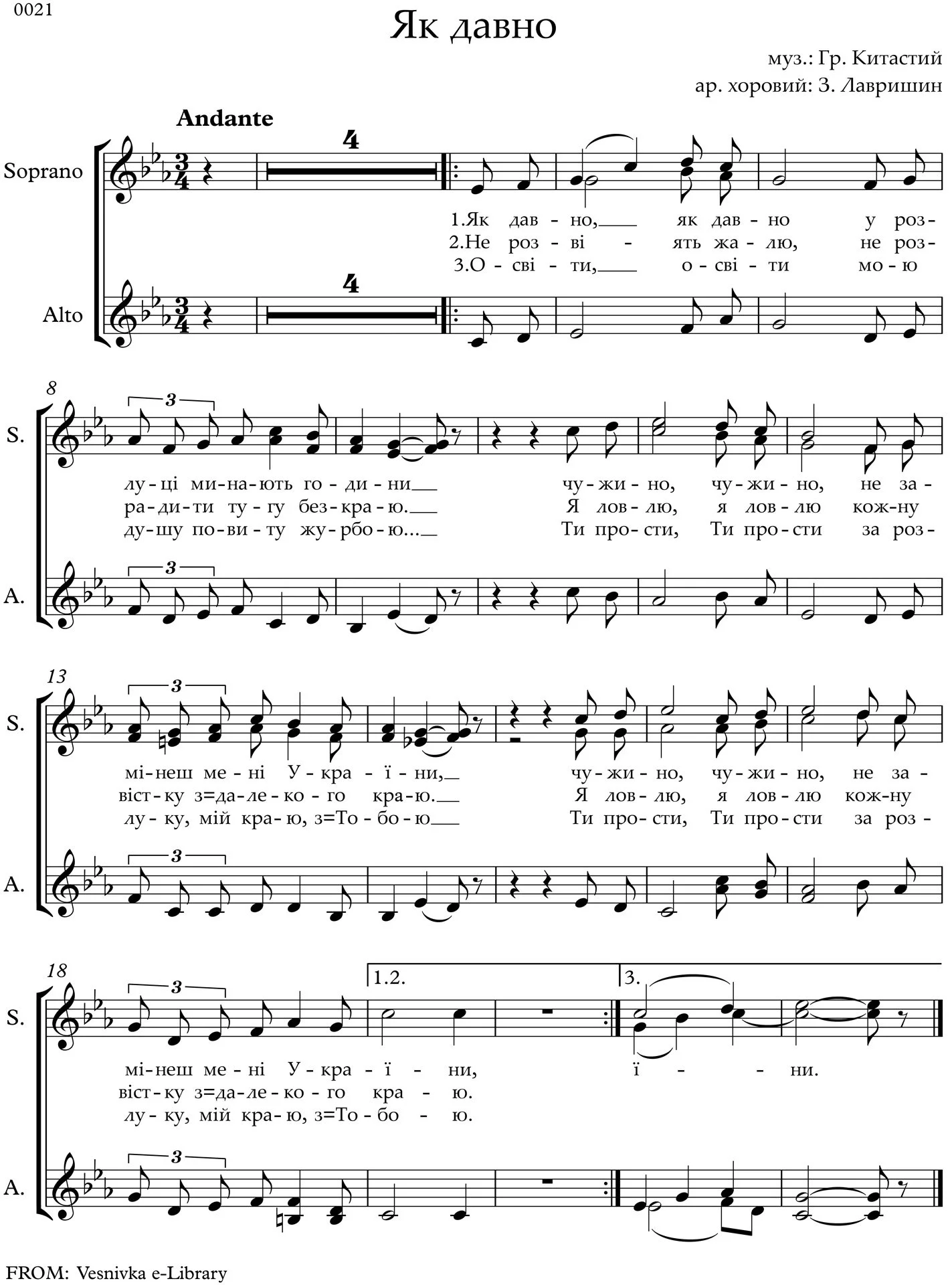 Arranger: Zenoby Lawryshyn | Зеновій Лавришин